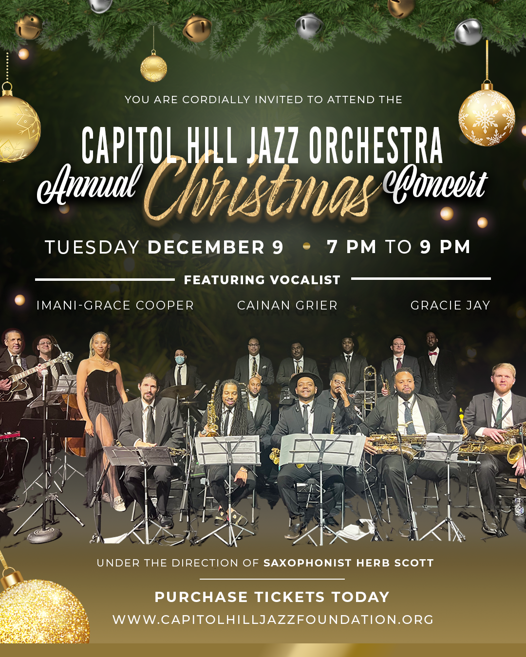 Home Click here for tickets to the Capitol Hill Jazz Orchestra’s Annual Holiday Concert Help support our programs in 2026 Join our mailing list